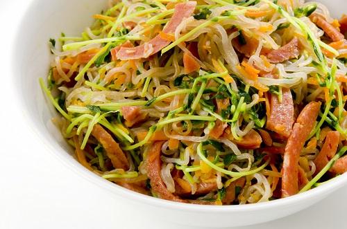ふたをとり豆苗を加えて、さっと炒め合わせる。皿に盛り付ければ豆苗と糸こんにゃくのプルコギの完成だ。冷めても美味しくお弁当のおかずにぴったり。冷凍保存するときは小分けしてラップで包み、冷凍用保存袋に移し入れる。あとは空気を抜き袋を閉じて冷凍室で保存しよう。