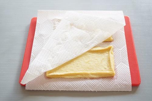 次にレンジで作る豆苗と油揚げのポン酢蒸しの作り方を紹介しよう。豆苗は根元を切り落としてサッと水洗いし、ザルにあげて水気をしっかりときり、半分の長さにカットする。油揚げはまな板の上にキッチンペーパーを広げ、間に挟み余分な油を拭き取って半分に切り、1cm幅の短冊切りにする。