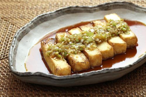 豆腐料理は淡白な味なので、コクのあるネギ塩だれとの相性はバツグン。冷奴にのせたり、厚揚げ豆腐と一緒に炒めたりするとより美味しく食べられる。