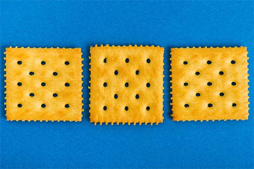 出汁の味がするたこ焼き粉と粉チーズを合わせたクラッカーは、子どもだけでなく大人のつまみにもなるアレンジ方法だ。たこ焼き粉、薄力粉、粉チーズ、塩を合わせて、サラダ油を加える。油がなじんできたら、水を加えてさらによくこね、ラップをして休ませよう。クッキングシートに生地をのせ、麺棒で均等に伸ばし、フォークで穴をあけ、包丁で好みのサイズにカットする。予熱しておいたオーブンに入れて焼けば完成だ。