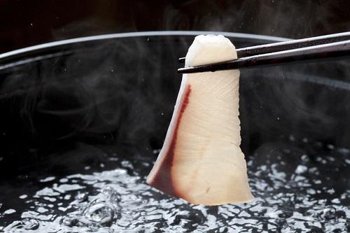魚介類のしゃぶしゃぶ鍋のなかでも、比較的リーズナブル、そして簡単に楽しむことができるのが、ぶり。とくに脂が乗った冬の時期におすすめしたいメニューである。ベースの出汁を火にかけるときに、酒を1カップ入れると旨みがグッと増す。水菜や豆腐など、シンプルな具材で楽しむといい。仕上げは雑炊がおすすめだ。