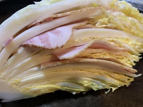 白菜に何かを挟むといえば、ミルフィーユ鍋が想起される。豚肉を挟んだ白菜を鍋やフライパンにぎっしりしきつめて火を通していくもので、いまや家庭料理の定番ともいえる存在だ。白菜ベーコンは、そのアレンジ版ということもできる。より簡単に作ることができ、忙しい日にもぴったりだ。