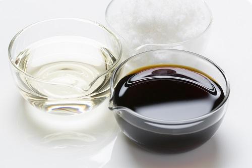さとうきびから精製した砂糖は、蒸したもち米や米麹、焼酎などのアルコールを原料とするみりんより甘みが強いため、三杯酢に砂糖を使う場合の割合は、1より少し少なめにするとよいだろう。みりんを使った場合の割合は、基本の1が目安となる。甘めが好みの人は砂糖、旨みやコク、上品な甘みを出したいならみりんを使うなど、料理と好みに合わせて使い分けるのがポイントだ。
