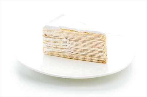 ホットケーキミックス150gに対して、卵3個、牛乳300cc、サラダ油大さじ1を入れ、泡だて器でかき混ぜる。バターなしでも作れるが、バターを入れる場合は、無塩バター15gを溶かして追加しよう。フライパンで生地を薄く焼き粗熱をとったら、生クリームと生地を交互に重ねていけばできあがりだ。