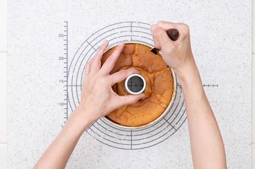 焼き上がったシフォンケーキはどう扱えばいいだろうか。型から外し方のポイント、または型を使ってそのまま保存する方法などを紹介する。