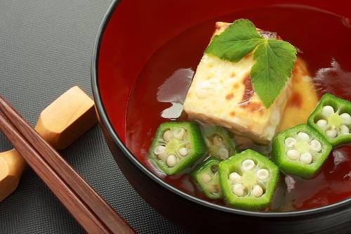 豆腐にはいくつか種類がある。味噌汁などでは絹ごし豆腐を使うのが定番であり、和風スープでも同じと考えてよい。ほかに、歯ごたえがあるほうが好きなら、木綿豆腐や焼き豆腐を選ぶのもアリだ。