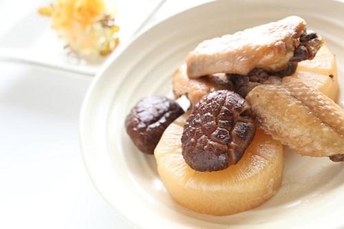 その点、こんにゃくなら無味無臭で煮崩れもしにくいのでおすすめ。ふろふき大根とともに、柚子味噌で食べるのもいいだろう。あるいは、鶏肉を入れて煮物風ふろふき大根にするという方法もある。鶏肉の旨みが大根によくしみて、メインのおかずにもってこいだ。鶏肉を入れる分、臭み消しに生姜を加えたり、出汁のほかに酒やみりん、しょうゆなどを足したりして味を調整しよう。さらにしいたけを加えると、ふろふき大根の味に深みが出るのでおすすめだ。