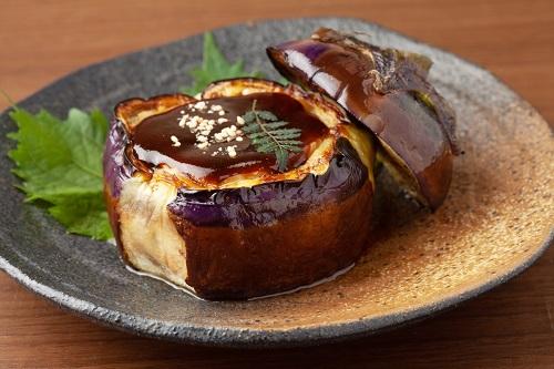 なすはガクの部分を切り落としてから縦に半分に切り、包丁の刃先を使って実のほうに格子状に切り込みを入れておくとよい。揚げ油を熱し、なすを素揚げにしたら、しっかりと油をきっておく。さきほどの田楽味噌を添えたら、完成となる。