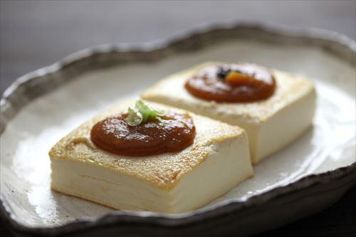 柔らかい胡麻豆腐に味噌をトッピングして作られている。解凍後、そのまま食べることができるのでとても便利である。