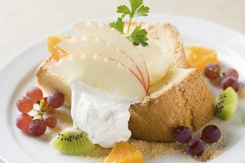 作る工程は同じだが、下準備に少し違いがある。強力粉は、薄力粉のように粉をふるいにかける必要がない。薄力粉は、だまになりやすいのに対して、強力粉はさらさらとしていてだまになりにくいのだ。あとは薄力粉と同じで、しっかりと食べごたえのあるシフォンケーキができる。