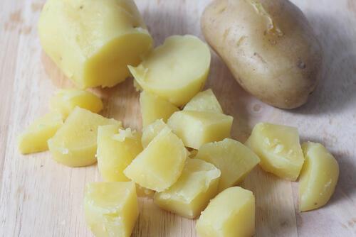 先述したように芽の部分は毒性の成分を含んでいるため、ピーラーの横についている芽取りか包丁の根元の角で丁寧に取り除くこと。じゃがいもは、1cm厚さのいちょう切りにしておこう。