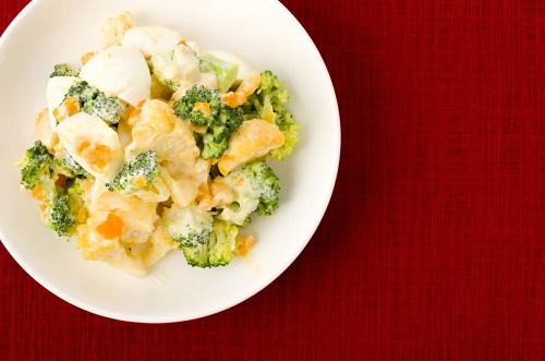 作り方は、茹でたブロッコリーと、茹で卵、桜の花型でくり抜いたハムをマヨネーズで和え、塩コショウで味を調えれば、できあがり。