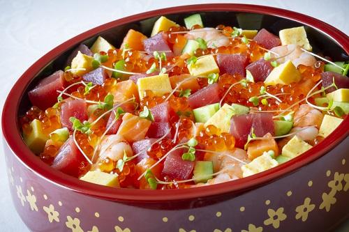 自宅で簡単なちらし寿司を作る場合には、家族でトッピングを考えるなどして楽しめるだろう。パーティーの持ち寄りやおもてなしのシーンでは、より映えるちらし寿司で品よく決めたいものである。そこでおすすめなのが、具材をサイコロ状に切ってトッピングするちらし寿司だ。