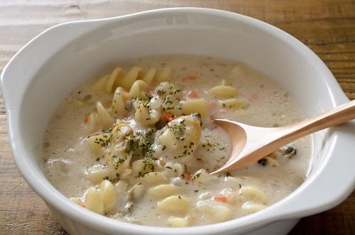 クラムチャウダーは二枚貝や野菜の旨みがスープにたっぷり含まれているため、スープパスタにして食べるのはとてもおすすめのメニューである。それほど手間がかかるものでもないため、あえてクラムチャウダーを多めに作り、翌日にスープパスタを食べるのもいいかもしれない。