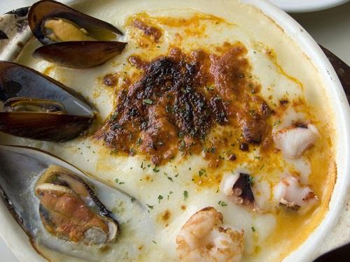 クラムチャウダーをホワイトソースの代わりに使ってグラタンにすることができる。耐熱皿に茹でたマカロニを入れ、上からクラムチャウダーとチーズをかけてオーブンで焼くだけで、シーフードグラタンが完成だ。焼く前にパン粉やパセリをふりかけておくのもいいだろう。パン粉をのせることでさくっとした食感を出すことができる。