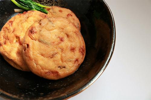 油抜きの方法は、2通りある。1つめはたっぷりの湯を沸かしてがんもどきをサッと通す方法。2つめはザルなどにがんもどきをのせて熱湯を回しかける方法だ。油をできるだけ落としたいときは湯に通す時間を長くしたり、調理の際はほかの油を足さずがんもどきの油を活用して焼くとよい。