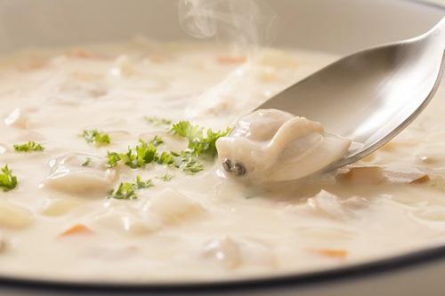 あさりの缶詰を使用したレシピの代表といえばクラムチャウダーである。牛乳やバターで作るまったりとした味わいのスープとあさりはバツグンの相性である。冬期にはとくに恋しくなるメニューといえるだろう。
