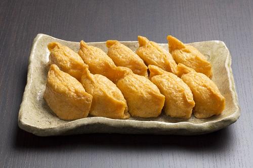 いなり寿司の要であるおいなりさん部分「味付け油揚げ」も、一度にたくさん作ってしまったという場合には冷凍保存が可能なことは知っておきたい。出汁と一緒に、1回分ずつをジッパーの保存袋に入れて冷凍しておけばいなり寿司と同様に3週間ほどは日持ちする。いなり寿司以外にもうどんやそばにのせたり、煮物に使ったり、餅を挟んで加熱したりとアレンジ性も高いので、冷凍して常備しておくのもよいかもしれない。