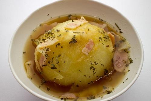 水分量が多く肉厚な新玉ねぎは、蒸すことでやわらかくとろりとした食感になる。それゆえカットしないまるごと調理も可能で、レンジを活用するとジューシーな仕上がりになる。