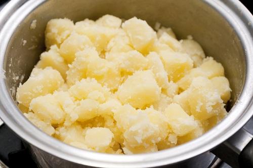 じゃがいもの皮をむき、8等分ほどに切って水にさらしておく。耐熱用のボウルにじゃがいもを入れる。じゃがいもが隠れるまで水を入れたら、ラップをしてレンジで加熱する。じゃがいもに火が通ったら、湯を捨てて完成だ。このとき、水分が気になるのなら再度ラップをせずにじゃがいもをレンジで加熱すると、よりホクホクに仕上がる。