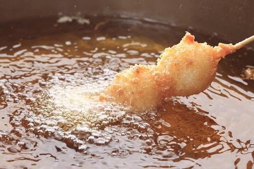 また、揚げ油の温度も重要で、商品にもよるが一般的に温度は170℃から180℃までが良いとされている。温度が低いと周りの衣が油を吸収して柔らかくなってしまったり、型崩れしたりしてしまう。逆に180℃より高くなると、中身に火が通る前に衣が焦げてしまうので注意が必要だ。きれいなきつね色を目指すには、温度管理がコツである。一度に何個も凍った食材を入れ過ぎると油の温度が下がってしまうので、慣れるまでは1個か2個からやってみるのがよいだろう。
