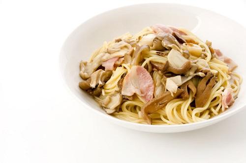 きのこスパゲッティは醤油やめんつゆを使った和風の味付けが多いが、にんにくやベーコンを使って仕上げるペペロンチーノ風もおすすめ。フライパンに多めのオリーブオイルをひいて熱し、細かく切ったにんにくと好みで鷹の爪を加える。香りが立つまで弱火で炒めたら、ベーコンときのこを加えて塩コショウで味を付けておく。全体にオリーブオイルが絡むまで炒めたら、茹でたパスタと茹で汁を少量加えて合わせる。