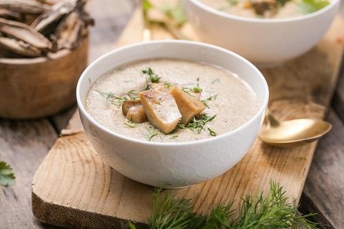 好きなきのこと玉ねぎをバターで炒め、水と洋風スープの素で煮込んだら、スープと具材をすべてミキサーにかける。あとは、それを鍋に戻し、牛乳と生クリームを加えて数分加熱し、塩胡椒で味を調えるだけ。これだけで店で食べるようなきのこのクリームスープになる。このときも、きのこは複数の種類を使うことをおすすめする。いろいろな種類のきのこを使ってお気に入りの組み合わせを見つけてみてはいかがだろうか。