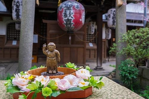 また、灌仏会では稚児行列も行われる。子どもたちが伝統的な装束を着て、境内や町中を練り歩く。そのとき、誕生仏を安置した花御堂(はなみどう)を白い象の背中に乗せ一緒に歩くのだ。花御堂はお釈迦様の産まれたルンビニの花園を表しており、木蓮や桜、れんぎょうなどの花が飾られている。灌仏会に白い象が登場するのは、お釈迦様の母親のマーヤー王妃がお釈迦様を身ごもる前、見た夢に白い象が現れたという言い伝えによるものだ。当時から白は穢れのない色であり、象は神聖な生き物とされていたようである。