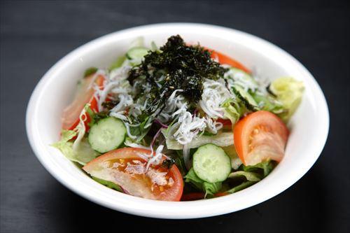 しらすときゅうりはサラダにしても美味しい。しらすをサラダにのせることで、旨みが口の中に広がり、いくらでも食べられるサラダが完成する。