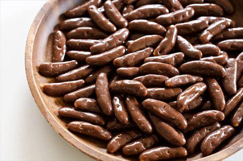 柿の種チョコレートとは、その名が示す通り、米菓の柿の種とチョコレートをドッキングさせたお菓子。チョコレートが柿の種にコーティングされているタイプやチョコレートに砕いた柿の種を混ぜてあるタイプなどがある。