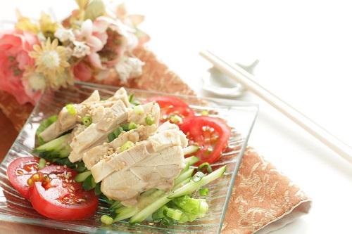 中華風サラダといえばバンバンジーも代表的なメニューであり、サラダチキンを使って簡単に作ることもできる。バンバンジーのタレは酢、砂糖、醤油、ごま油にいりごまと練りごまを加えるだけであり、中華風サラダに使う調味料と大きな違いはないのである。