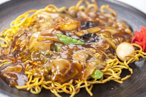 かた焼きそばは、市販の揚げ麺を使うことで簡単に調理することができるメニューである。