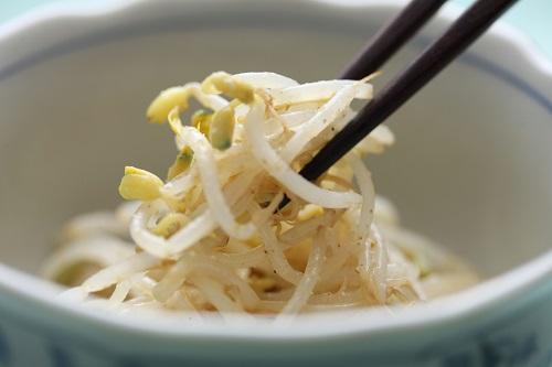 サニーレタスをもやしと合わせてめんつゆやポン酢で味付けすれば、和風のナムルが完成する。