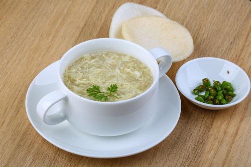 作り方は、まずスープを作っておく。鶏ガラスープと醤油を使ったり、ラーメンスープの素を使ったりしてもよい。そしてカニ缶を加えてスープを温め、ふつふつと沸かしたところに溶き卵を回し入れる。温度が低いと卵が固まらず濁ったスープになってしまうので気をつけよう。