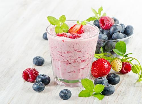 スムージーにアーモンドミルクヨーグルトを加えると、すっきりとした味に仕上がる。フルーツなどとも相性がよく、さらに手軽なのでおすすめだ。はちみつやフルーツなど、好みの材料を加えてミキサーにかけよう。ただしはちみつを使う場合には、1歳未満の子どもに飲ませないように注意しよう。