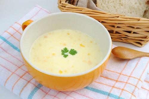 クリームコーン缶を使えば、コーンスープがミキサーなしでもパパッと作れる。