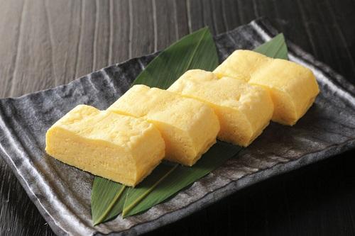 だし巻き卵は、熱いうちだと、どんな形にでも整えることができる。まきすを使って、丸く巻けば丸型、四角く巻けば四角い形を作ることができる。焼いているときに、形がくずれても、熱いうちに巻きすを使えばきれいに修正することができる。