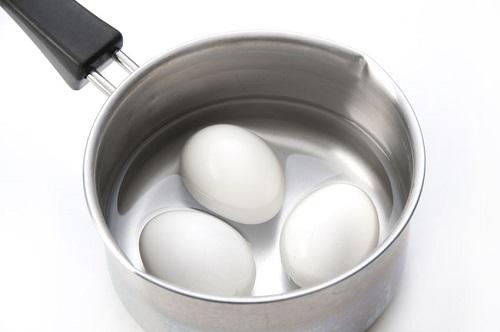 - 水につけておいた卵を2の鍋に入れ、再び火をつける。