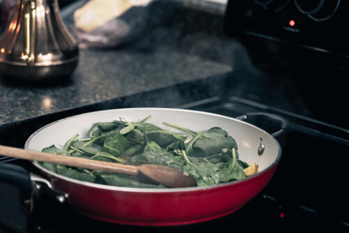 ベーコンはほうれん草とも卵とも相性のよい食材だ。カリカリに焼いた香ばしい香りと食感は風味を豊かにするので、無駄に調味料を加える必要もない。ベーコンを加えるときは細切りにし、炒めて準備をしておこう。ほうれん草と同じタイミングで加えるとよい。