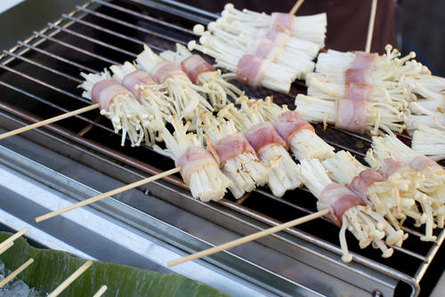 セミドライえのきの石づきを取って、さっと水に通しベーコンで巻く。こんがり焼いたら好みで醤油を少したらしてもいい。ジューシーなベーコンと歯ごたえシャキシャキのえのきがベストマッチ。シンプルながらハズレのない一品。