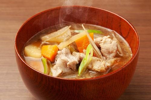キャベツやゴボウ、ニンジン、大根など野菜をたっぷり使った豚汁は、いなり寿司と相性バツグンの献立だ。しょうがやニンニクを入れることで、野菜の旨みが引き立ち味わい深い豚汁ができあがる。たくさんの野菜と豚肉が入っているので、汁物ながら食べごたえのある一品の完成だ。