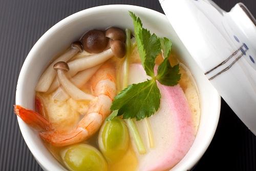 サツマイモやかぼちゃ、キノコなど野菜をたっぷり入れた具だくさんな茶碗蒸しはいかがだろうか。いなり寿司と茶碗蒸しの献立は、大喜びする子供も多いだろう。白出汁を使えば、味付けも簡単にできるのでおすすめだ。