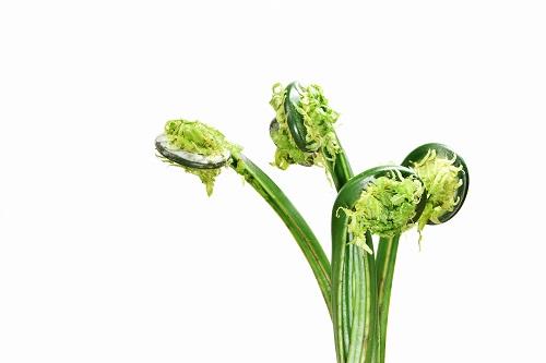 3~5月にかけての時期に、スーパーの店頭に並ぶこごみ。初めてこごみという山菜の名前を聞いたという人もいるかもしれない。こごみの特徴のひとつがアクがほとんどないことだ。