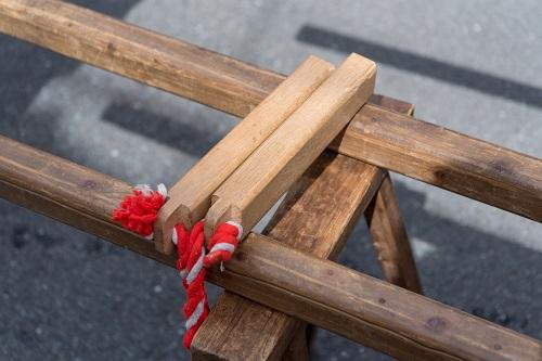 拍子木切りの読み方は、「ひょうしぎぎり」が正解。拍子木とは、音を鳴らす道具のこと。柱のような四角柱の木を打ち合わせて、音を出すもので、そのルーツはかなり古いと考えられている。古くは、宗教的な意味合いや魔除けの道具としても使われていたといわれている。現代で我々がその姿を目にするのは、「火の用心」の見回りや相撲の行司、歌舞伎では幕開きや幕切れなどであろう。ちなみに歌舞伎の世界では「柝(き)」と呼ばれるそうだ。