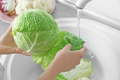 そのため、外側の数枚の葉以外はわざわざ一枚一枚はがして洗う必要はないようだ。外側の葉については農薬や土はついていることもあるので、芯のまわりに切り込みを入れて1枚ずつはがし、使わないで捨てるか、もしくは水を張ったボールに入れて根元を中心にやさしく洗うといい。