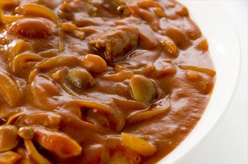 創味シャンタンでおなじみメーカーだが、デミグラスソースをはじめ洋風の調味料も数多く手がけている。完熟トマトとソテーした玉ねぎが、味わいに深みを加えている。