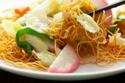皿うどんの餡かけに、肉や魚介などを入れるのが醍醐味だ。しかし、野菜をふんだんに使用することで、量をコントロールできるだろう。とくに白菜を入れると、自然とカロリーの摂取量を減らせる。