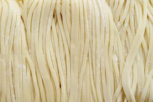 ポイントは小麦粉は強力粉を使うことだ。強力粉はたんぱく質とグルテンが多く、こねたときに強い弾力が生まれるのが特徴である。ただし、強力粉はその弾力から、伸ばしたときの戻りも強く扱いが難しいため、中力粉を使用したり薄力粉を混ぜて使用してもよい。