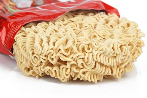 インスタントのカルグクスには乾麺と具材、そして粉末スープが入っており、日本のインスタント麺と内容も作り方もとくに違いはない。湯を沸かして麺と具材、粉末スープを入れ、5分間煮込むだけである。