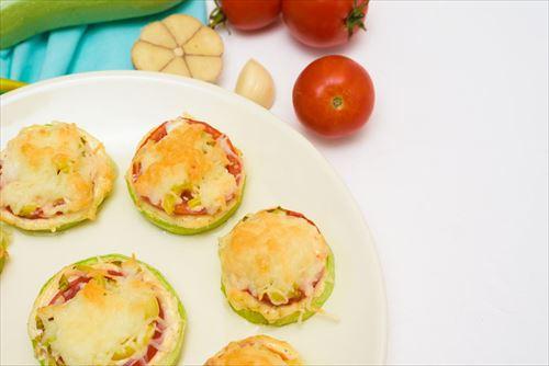 2~3mmの薄さに輪切りにしたズッキーニとベーコンを耐熱容器に重ねるように並べ、ピザ用チーズをかけてオーブントースターで10分ほど焼く。同じく薄切りにしたトマトやナス、じゃがいもを一緒に重ねても美味しい。また、マヨネーズで下味を付けてから焼くと、より濃厚な味に仕上がる。トースターの代わりにグリルを使用してもよいが、焦げやすいため5分ほど焼いたら様子を見ながら加熱しよう。